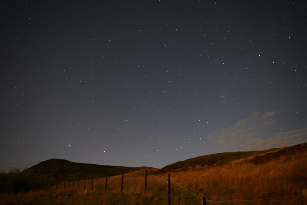Une nuit presque sans nuage et sans source de pollution lumineuse. Uniquement la lune, les étoiles et notre cabane roulante sous le manteau étoilé. L’occasion parfaite pour essayer de capturer quelques clichés nocturnes. Chose que je n’ai jamais vraiment fait précédemment.