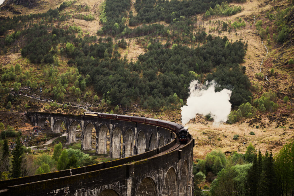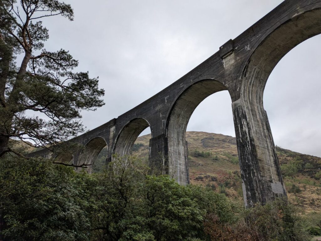 Le viaduc ferroviaire de Glenfinnan où passe le « Jacobite Steam Train ». Ça ne vous dit rien ? Pourtant si vous avez vu les films de Harry Potter, il devait vous être familier. C’est ici qu’a été tournée la scène dans le second film (la chambre des secrets) où Ron et Harry le survolent avant de s’écraser comme des nazes dans le saule cogneur car ils n’ont pas passé leur code de conduite de voiture volante.
