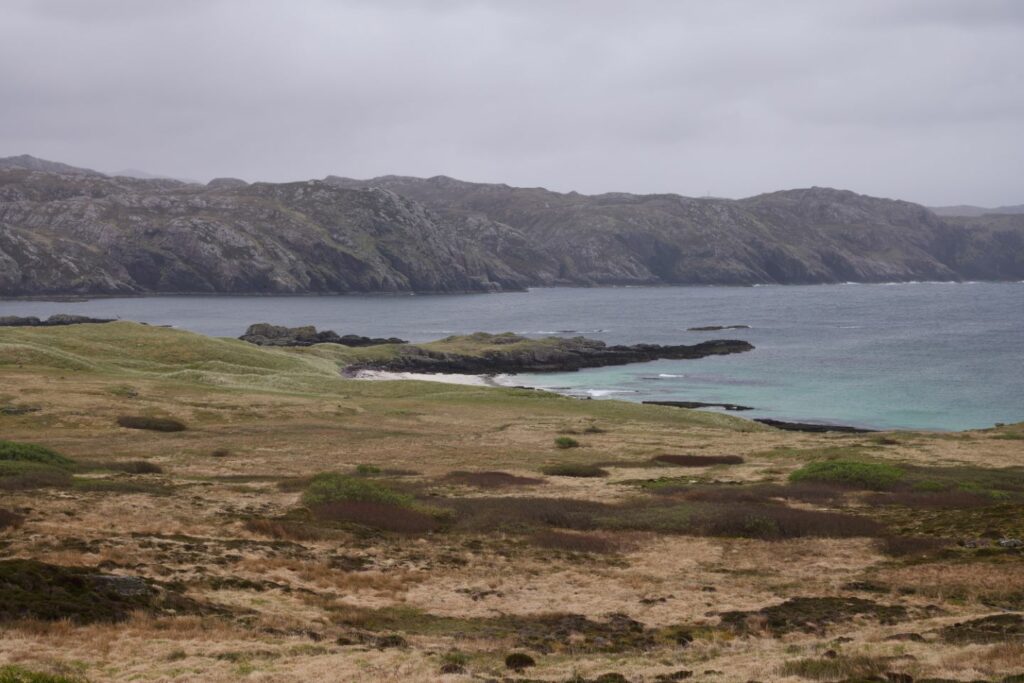 Nous confirmons les dires, c’est juste magnifique, on passe d’un environnement plutôt océanique à un plateau rocailleux, totalement désert, qui se jette dans une prairie qui borde une plage de sable rose à l’eau cristalline au niveau de Applecross. Nous nous stationnons quelques minutes pour faire le plein en eau et utiliser les sanitaires à disposition (incroyable le nombre de toilettes disponibles et propres un peu partout).