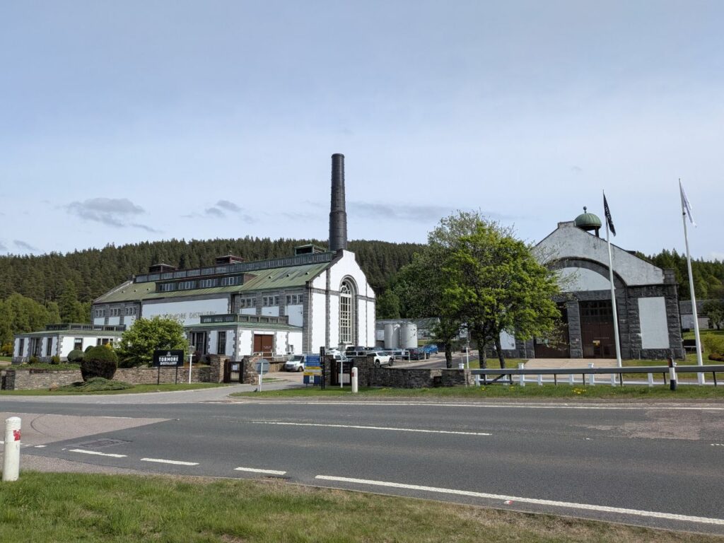 Le black pudding est meilleur que cet étrange mélange entre tarte et pâtes. Mais ça a le mérite de plâtrer le ventre. Et ça tombe bien car la vallée de la Spey, c’est aussi la vallée des distilleries.