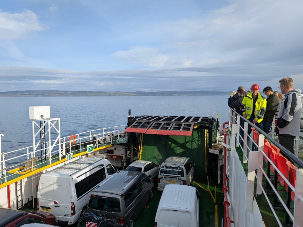 Nouvelle expérience de vie (on peut le dire) : manoeuvrer pour se garer dans un ferry. En réalité c’était un tout petit ferry, une simple marche avant en douceur et nous étions calés vers la proue.