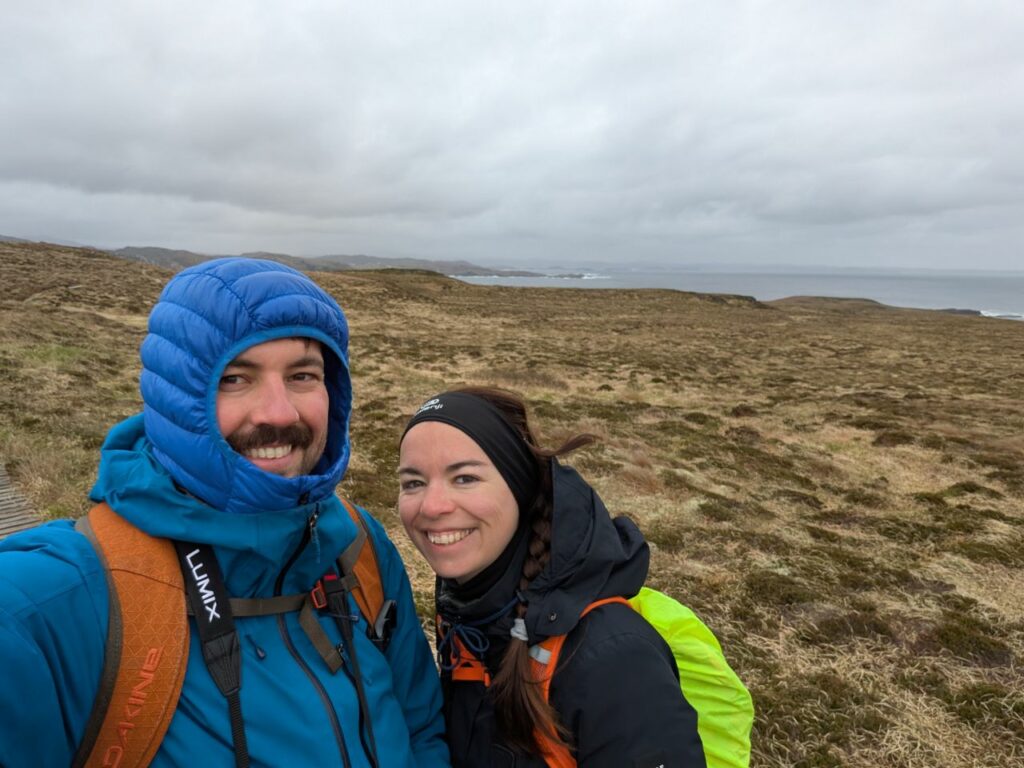 Après quelques minutes de route, nous décidons de faire halte pour la nuit à l’entrée d’une tourbière, il y a du vent, de la pluie horizontale et les prévisions météo annoncent 3° cette nuit. Hâte de se blottir dans nos duvets en plume pour la nuit.