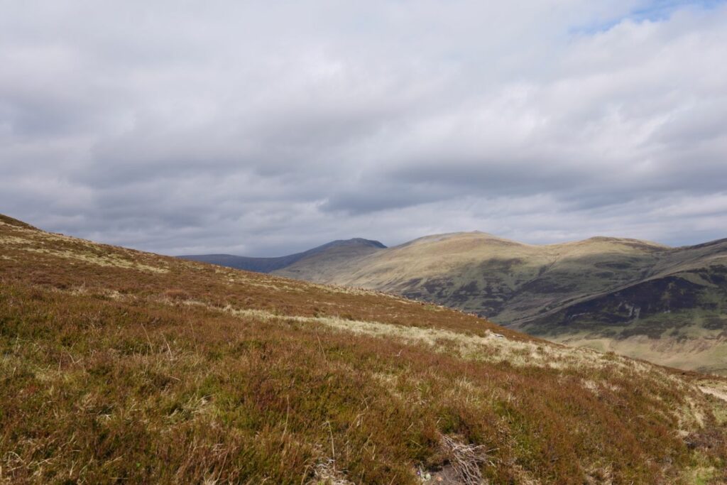 La montée est raide mais la vue au sommet du Ben Gulabin (809m d’altitude), vaut franchement le détour, en plus nous sommes absolument seuls dans cette immensité. Nous remarquons plusieurs fois de grandes étendues de bruyères calcinées malgré une météo souvent humide sous ces latitudes.