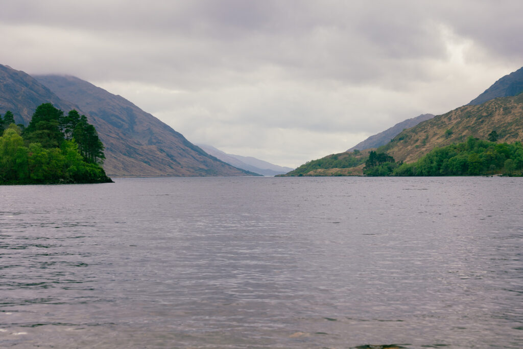 Réveil parfait dans ce cadre idyllique. Le vieux château en ruine au milieu du loch est toujours là. Impossible de la visiter autrement qu’en y allant avec un canoë ou autre embarcation. Pas question pour ma part de tenter la traversée à la nage, l’eau est beaucoup trop froide, et puis on ne sait jamais ce qui habite les profondeurs de ces eaux obscures.
