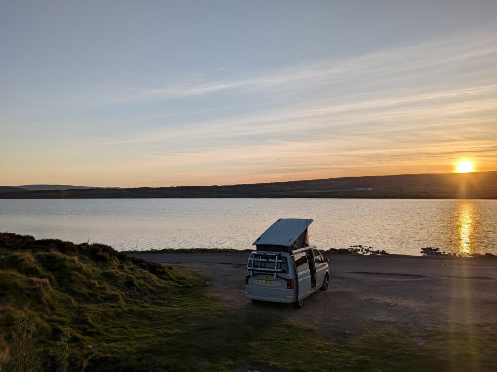 Nous finissons par trouver un petit parking en bordure d’une plage ensoleillée à proximité de Wick pour terminer la journée. Espérons qu’il fasse un peu plus chaud cette nuit !